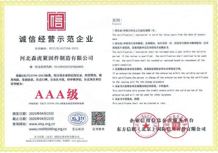 河北森虎緊固件制造有限公司成立于2011年,是建廠較早的緊固件企業。西臨京廣線,東臨京深高速,地理位置優越,交通便利。 主要生產:化學錨栓、機械錨栓、定型化學錨栓、高強度8.8級化學錨栓、自切底機械錨栓、車修壁虎,膨脹螺栓,植筋膠。 質量方針:先進技術、科學管理、優良品質、用戶滿意; ...